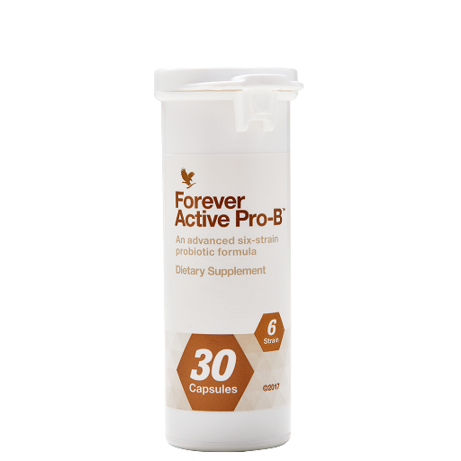 Forever Active Pro-B® es una fórmula balanceada de seis cepas probióticas que promueven la digestión sana, mejoran la absorción de nutrientes y apoyan la función inmune.